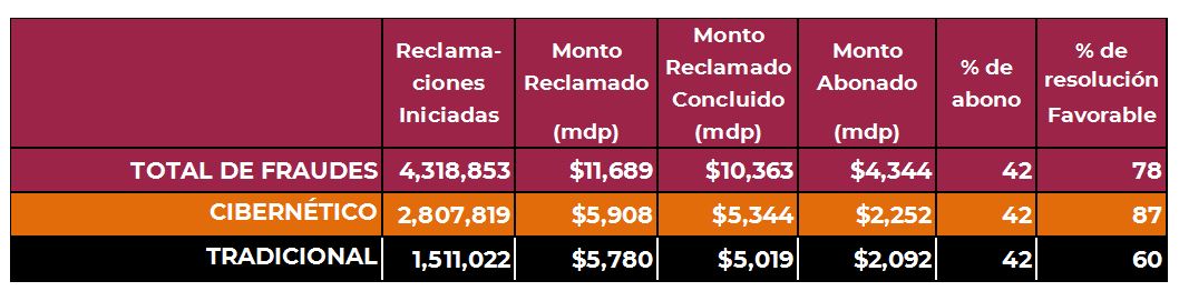 De los 4.3 millones de reclamaciones por posible fraude, el 65% correspondieron a fraudes cibernéticos y el 35% a los tradicionales.