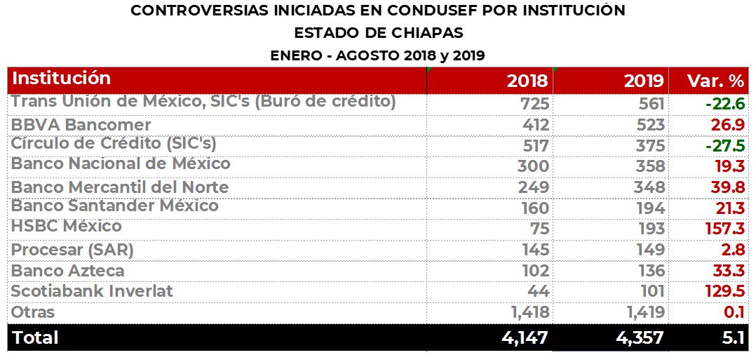 En el primer semestre de 2019, de 34 Bancos que registraron reclamaciones monetarias, 10 conjuntaron el 97% del total de las reclamaciones.