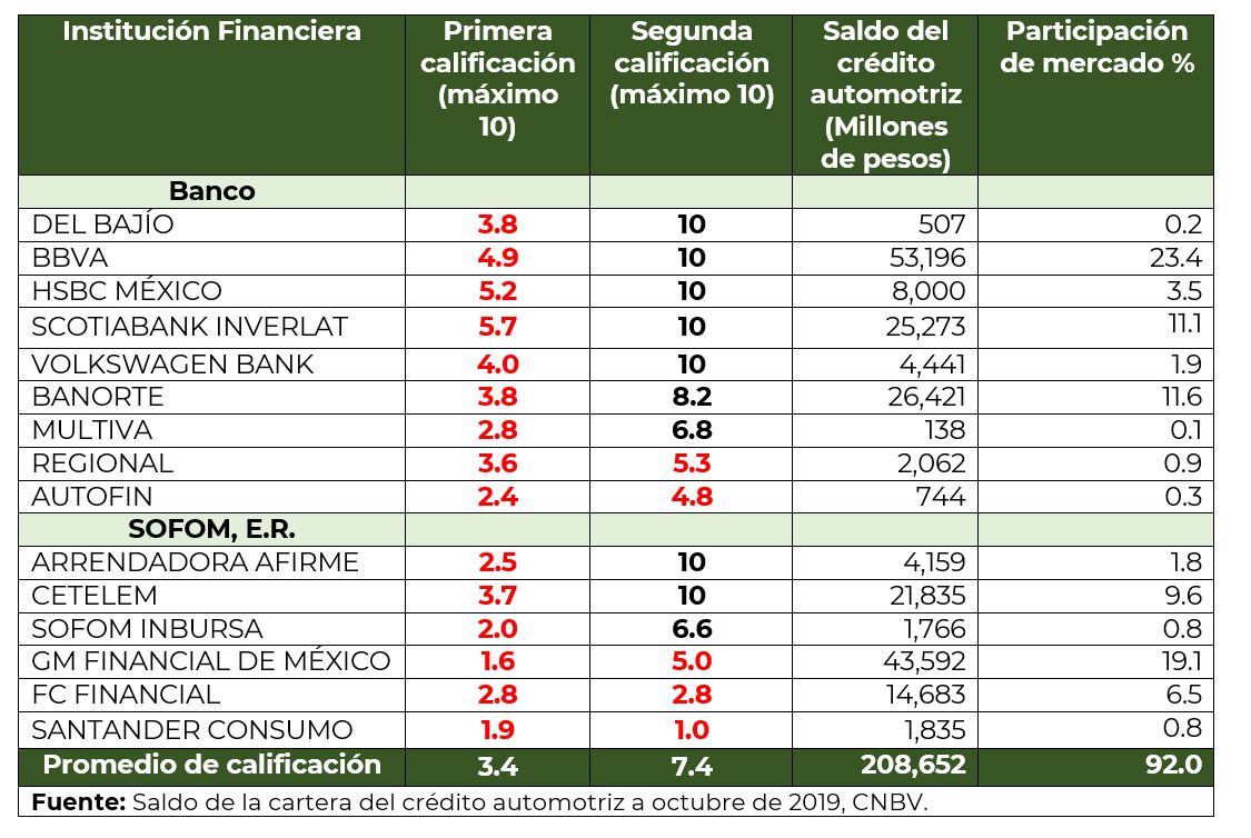 De acuerdo con información de la Comisión Nacional Bancaria y de Valores, el saldo del crédito automotriz otorgado por la banca y las SOFOM, E.R. al mes de octubre de 2019, ascendió a 226 mil 799 millones de pesos, del cual las instituciones evaluadas tuvieron una participación del 92%, esto es de 208 mil 652 millones.
