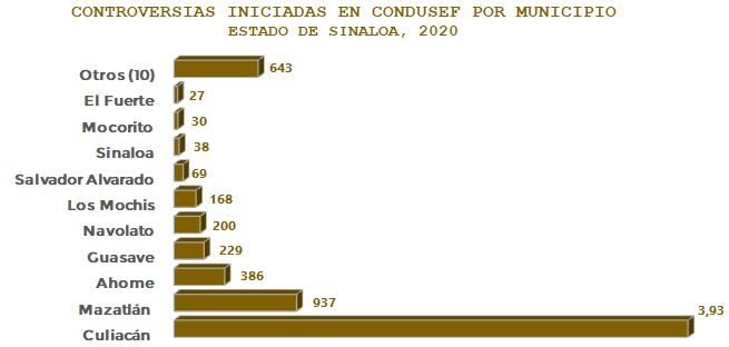 En un solo municipio del estado de Sinaloase concentró el 59.0% de las controversias:Culiacán, siguiendo de lejos Mazatlán con el 14.1%.