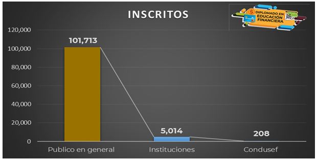 El grupo con el mayor número de inscritos fue el de PÚBLICO EN GENERAL con un total de: 101 mil 713 aspirantes; seguido de INSTITUCIONES (26 grupos de instituciones educativas, públicas y privadas) con 5 mil 014 y CONDUSEF con 208 (conformado por colaboradores, personas de servicio social, del programa jóvenes construyendo el futuro, prácticas jurídicas y prácticas profesionales). Alrededor del 50% de los inscritos son mujeres.