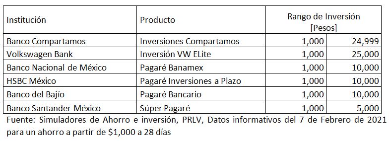 Si deseas comparar rendimientos, montos finales y otros datos, puedes hacer uso del simulador de Ahorro e Inversión de la CONDUSEF en: https://simulador.condusef.gob.mx/condusefahorro/