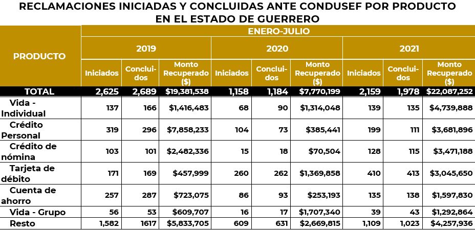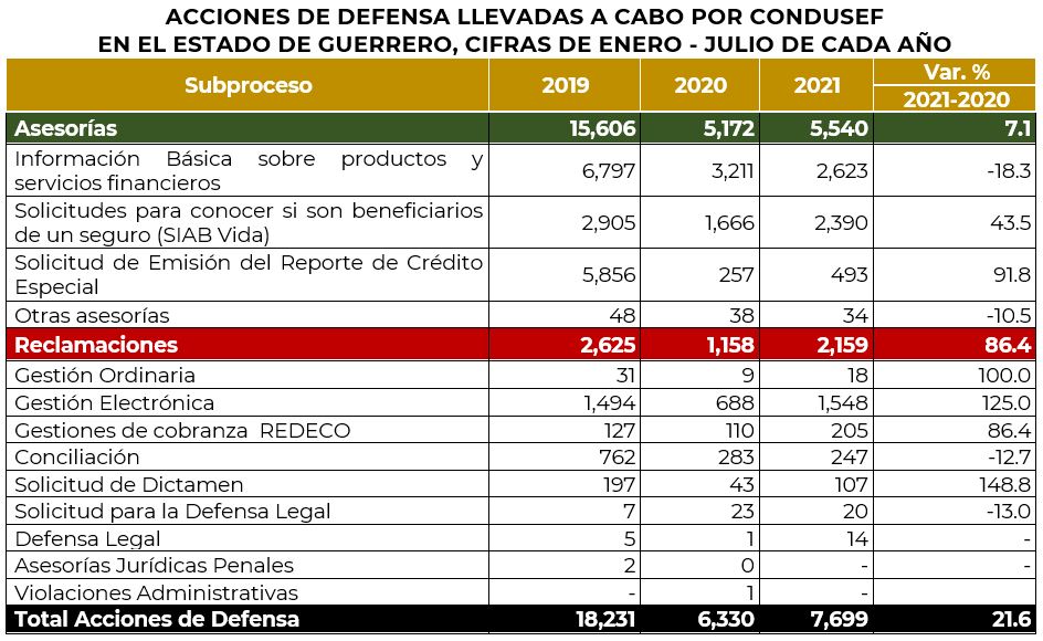 La Comisión Nacional para la Protección y Defensa de los Usuarios de Servicios Financieros (CONDUSEF) informa sobre la evolución de las controversias iniciadas en el estado de Guerrero en el periodo enero-julio de 2021, en comparación con el mismo periodo del año anterior y de 2019, que fueron atendidas por los funcionarios con los que cuenta la Unidad de Atención a Usuarios (UAU) ubicada en Acapulco de Juárez.