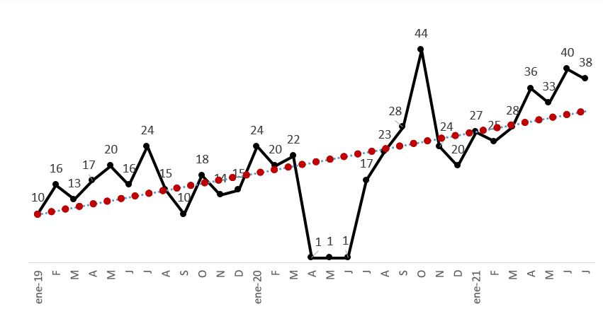 De ahí que el nivel de las asesorías otorgadas todavía no se recupere a los niveles que se brindaban en el año 2019 y que en este periodo que se analiza se reporta un incremento del 7.1% respecto al mismo periodo de 2020. Sin embargo, cosa diferente se registra a nivel de las reclamaciones, ya que reportaron un incremento del 86.4%, es decir, pasaron de 1,158 a 2,159.