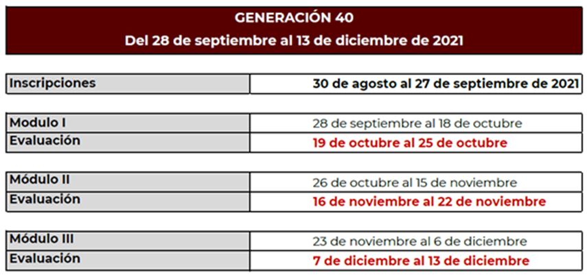 El periodo de inscripción será del 30 de agosto al 27 de septiembre, podrás registrarte ingresando al sitio: https://diplomado.condusef.gob.mx/. El Diplomado inicia el 28 de septiembre y concluirá el 13 de diciembre de 2021.