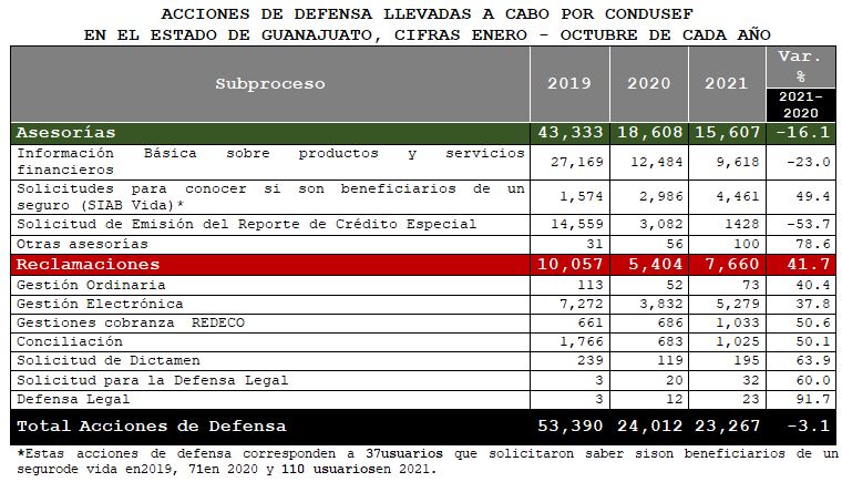 Respecto a las reclamaciones, estas reportaron un incremento de 41.7% en 2021 respecto a 2020, al pasar de 5,404 a 7,660 asuntos, sin embargo,aún se encuentran 24% por debajo de las registradas en 2019.
