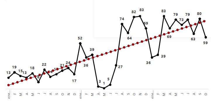 Dentro de los posibles fraudes destacan aquellos que se realizan de forma virtual (electrónica), los cuales han mostrado una tendencia al alza,como se observa en la gráfica que sigue.