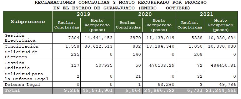 En cuanto a los montos recuperados de las reclamaciones concluidas en el periodo analizado, su importe sumóun poco más de 21 millones de pesos, lo que significó una disminución de 15% respecto al mismo periodo de 2020.