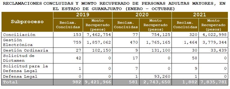 De los asuntos concluidos en 2021, el 28% fueron de personas adultas mayores y respecto al monto recuperado total, el 37% correspondió para este mismo estrato de edad.