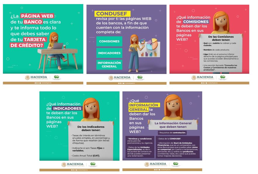 Para ello la CONDUSEF realizó infografías, las cuales permiten a las y los usuarios, de manera didáctica, conocer el quehacer de la supervisión y cómo ésta contribuye a proporcionar información suficiente y clara que ayude a un mejor manejo del producto, sin cubrir costos que no corresponden y con ello mejorar sus finanzas personales.