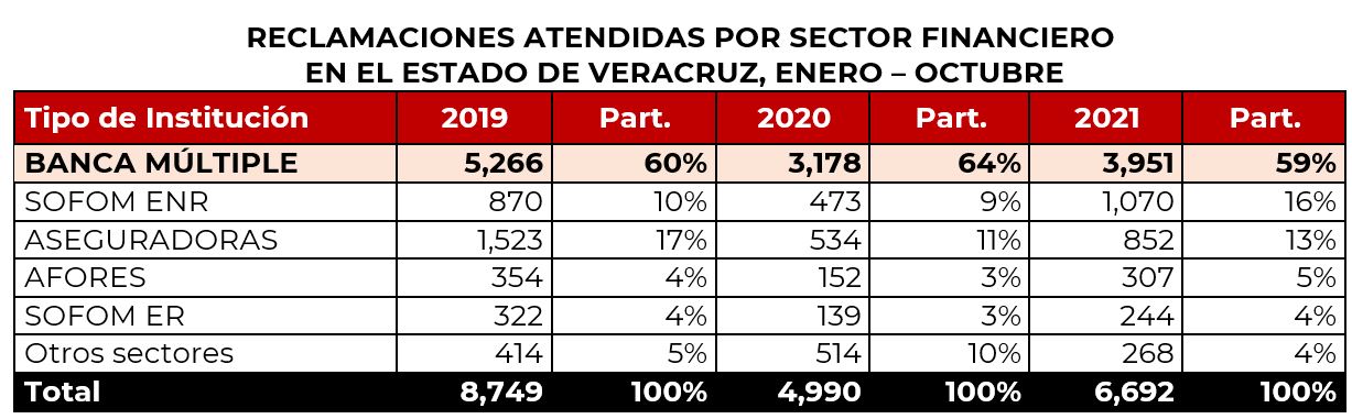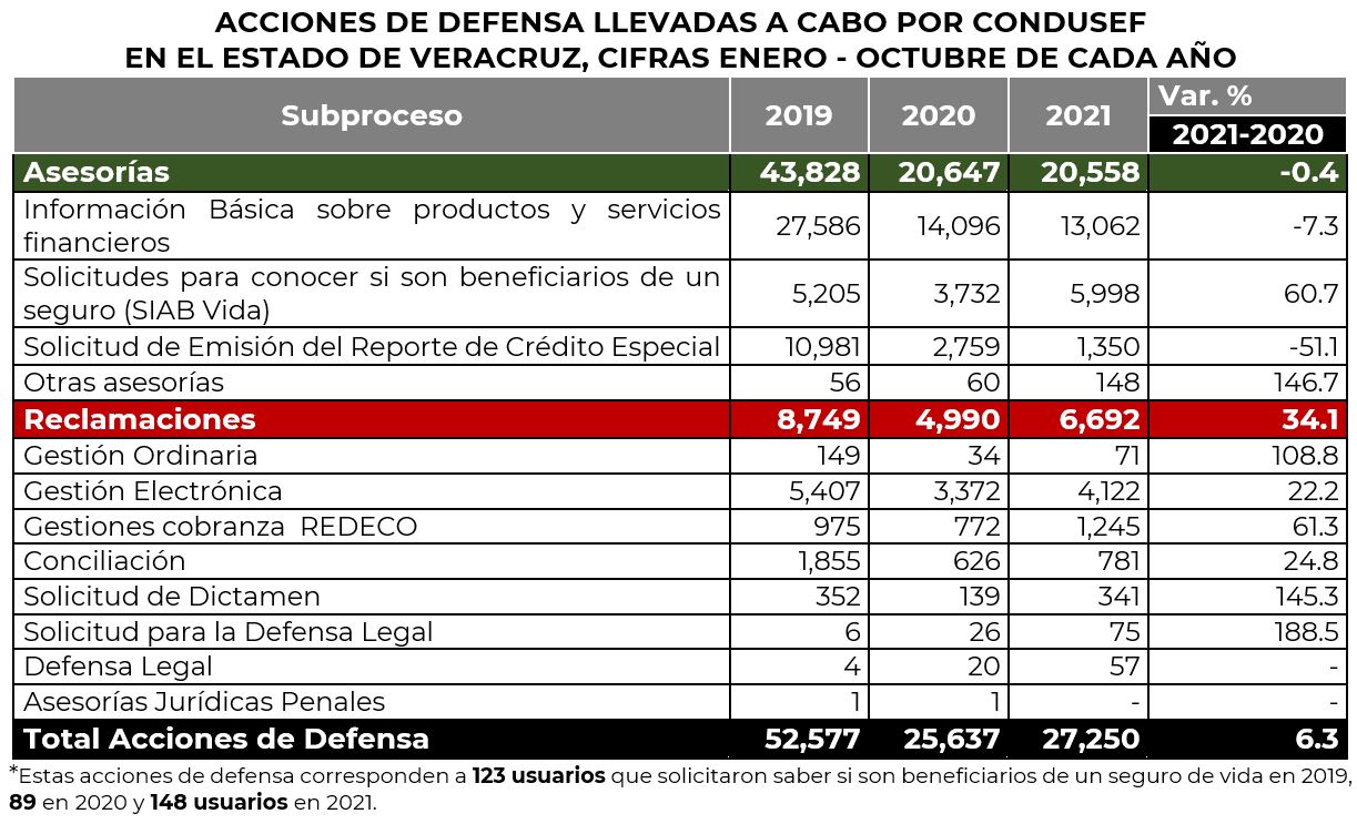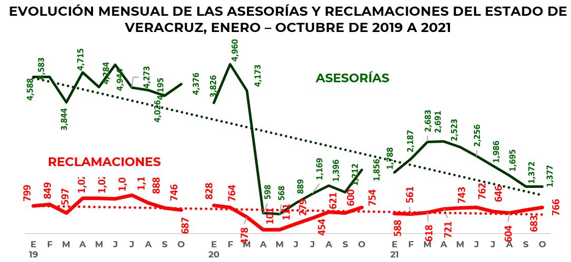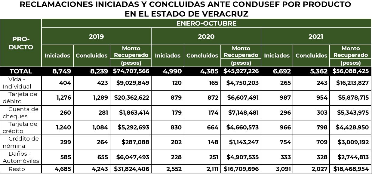 La Comisión Nacional para la Protección y Defensa de los Usuarios de Servicios Financieros (CONDUSEF) informa sobre la evolución de las controversias iniciadas en el estado de Veracruz en el periodo enero-octubre de 2021, en comparación con el mismo periodo del año anterior y de 2019, que fueron atendidas por los funcionarios con los que cuenta la Unidad de Atención a Usuarios (UAU) ubicada en 5 de mayo, Col. Centro, Veracruz, Ver.