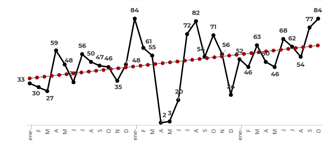 Dentro de los posibles fraudes destacan aquellos que se realizan de forma virtual (electrónica), los cuales han mostrado una tendencia al alza, como se observa en la gráfica que sigue.