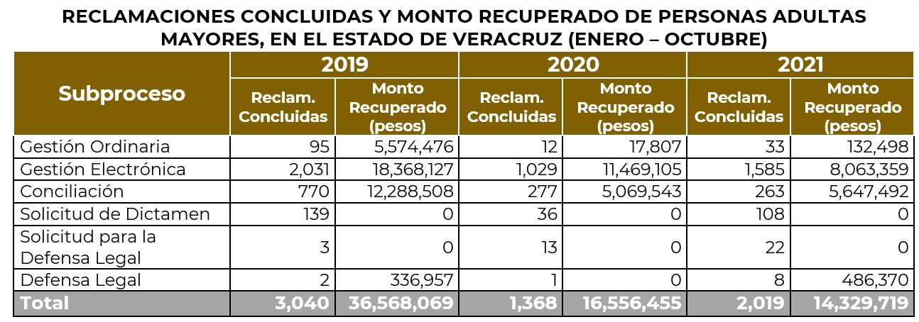 De los asuntos concluidos en 2021, el 37.7% fueron de personas adultas mayores y respecto al monto recuperado total, el 25.5% correspondió para este mismo estrato de edad.