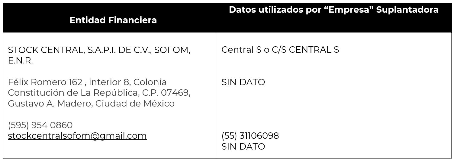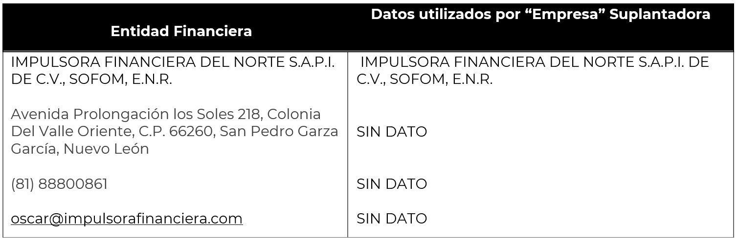 suplantación de su razón social por personas físicas o *empresas*, que buscan