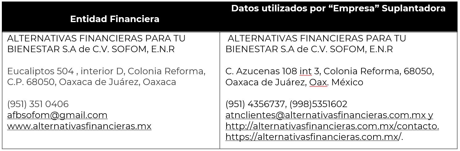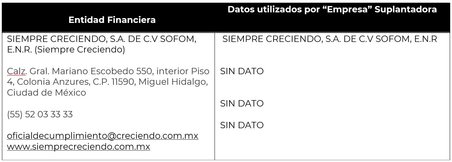 La Comisión Nacional para la Protección y Defensa de los Usuarios de Servicios Financieros (CONDUSEF) informa que, de enero a mayo de este año 2022, 61 instituciones financieras se han visto afectadas por la suplantación de su nombre comercial, denominación, logo e incluso de algunos de sus datos fiscales o administrativos, a las que ahora se suman otras 15 SOFOM, E.N.R, detalladas a continuación en anexo:
