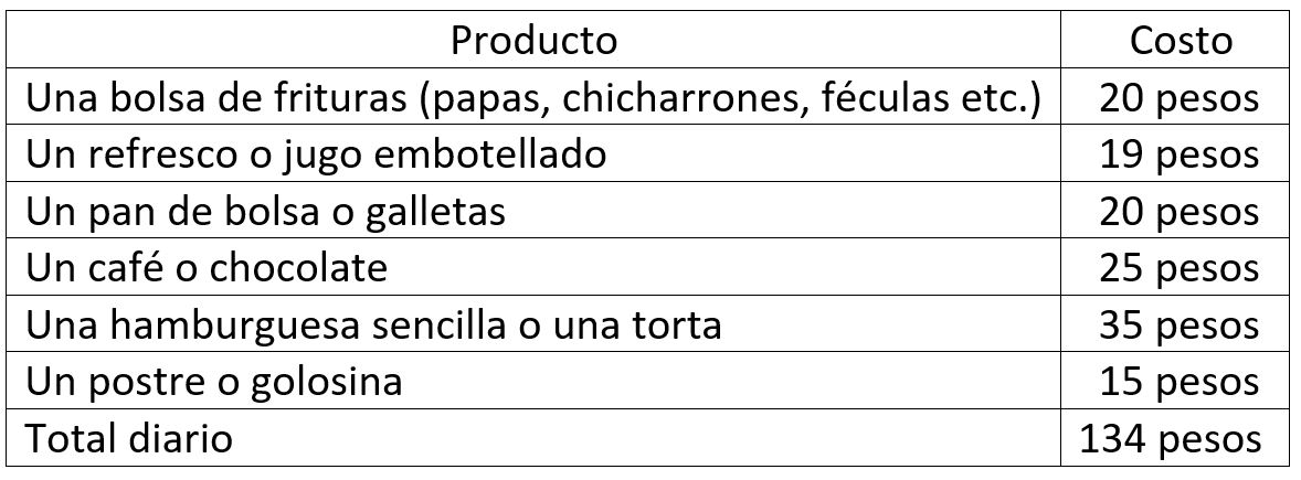 Aquí te damos algunos ejemplos de productos chatarra presentes en tu vida cotidiana y lo que podrías gastar a diario, cada tercer día o a la semana, dependiendo tu estilo de vida: