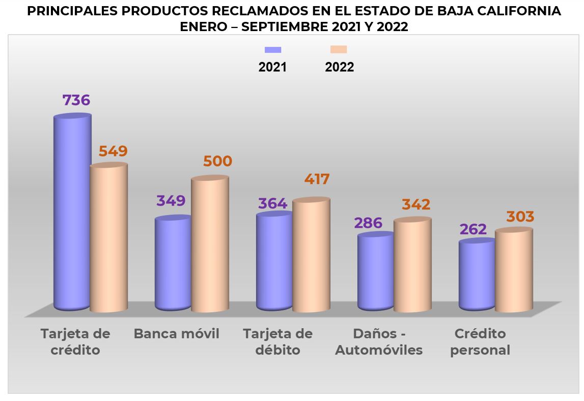 En este periodo, de los cinco principales productos, cuatro de ellos mostraron un incremento en sus reclamaciones respecto al mismo periodo de 2021, destacando Banca móvil con 43.3%.