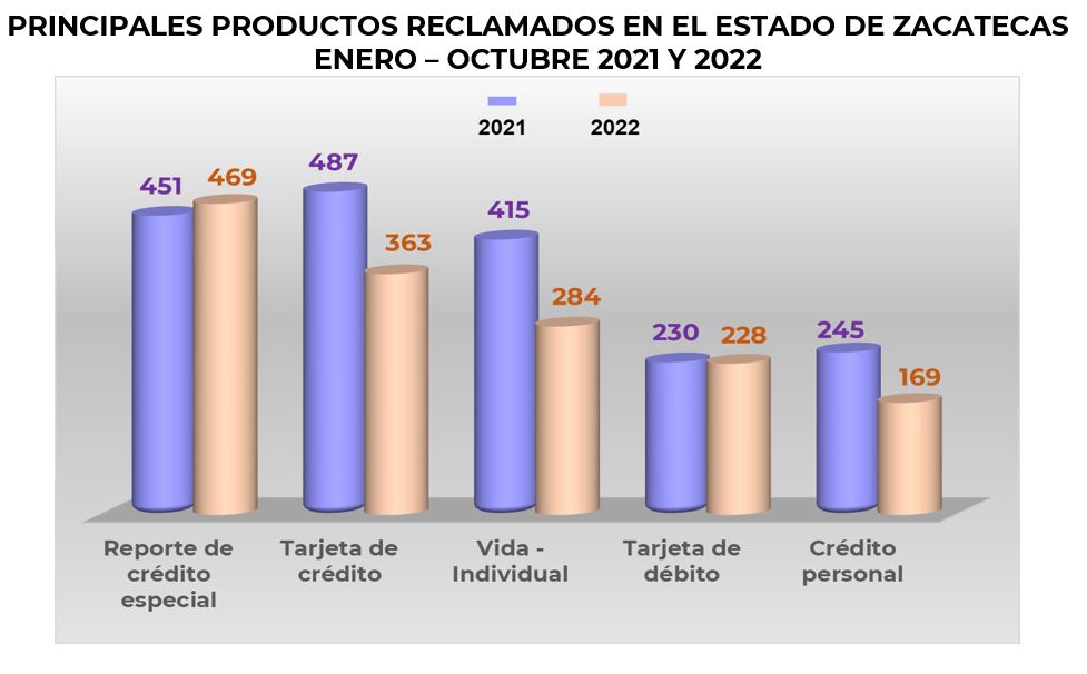 Durante el periodo enero – octubre de 2022la Unidad de Atención a Usuarios (UAU) de CONDUSEF registró 2,405 reclamaciones en el estado de Zacatecas,lo que representó un decremento de 19.5% respecto al mismo periodo de 2021, cuando se registraron 2.986. Respecto a las reclamaciones recibidas a nivel nacional, esta Unidad participó con el 1.2%.