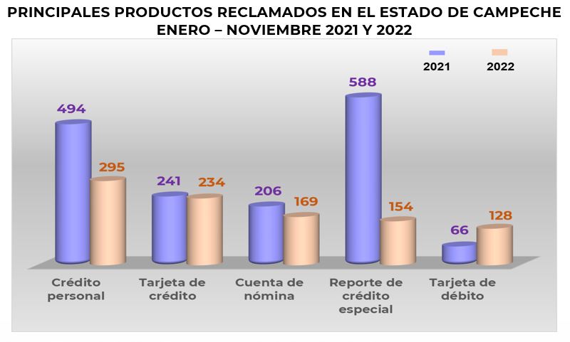 En este periodo, de los cinco principales productos solo Tarjeta de débito mostró un incremento en sus reclamaciones, con respecto al mismo periodo de 2021, de 94%.