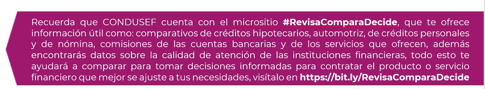 Síguenos en Twitter: @CondusefMX, Facebook: /Condusefoficial, Instagram: @condusefoficial, Youtube: CondusefOficial y Tiktok: @condusefoficial