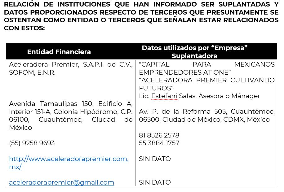 - ACELERADORA PREMIER, S.A.P.I. DE C.V., SOFOM, E.N.R.