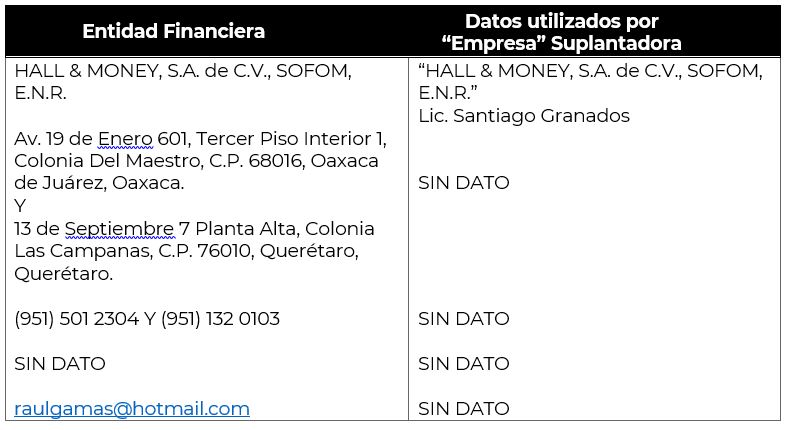 - HALL & MONEY, S.A. DE C.V., SOFOM, E.N.R.