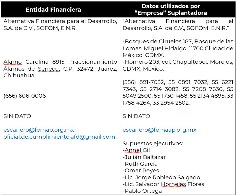 - ALTERNATIVA FINANCIERA PARA EL DESARROLLO, S.A. DE C.V., SOFOM, E.N.R.
