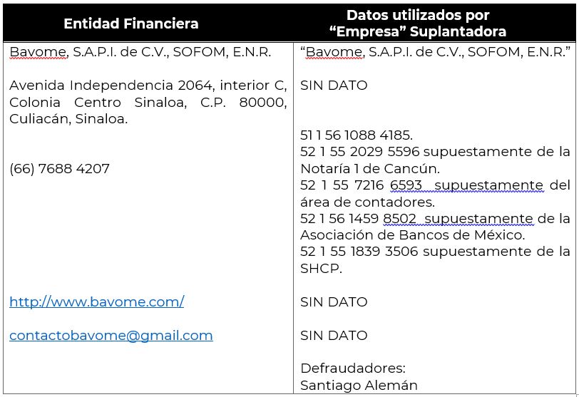 - BAVOME, S.A.P.I. DE C.V., SOFOM, E.N.R.