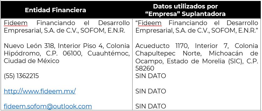 - FIDEEM FINANCIANDO EL DESARROLLO EMPRESARIAL, S.A. DE C.V., SOFOM, E.N.R.