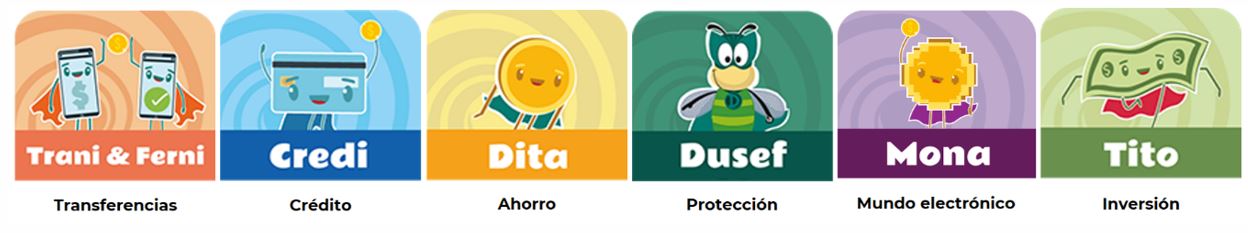 Durante la misión y en compañía del “Escuadrón Billete”, las niñas y los niños aprenderán temas que les ayudarán a crear y fortalecer sus poderes financieros en: