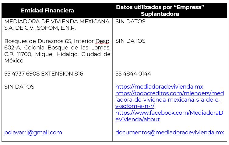 - MEDIADORA DE VIVIENDA MEXICANA, S.A. DE C.V., SOFOM, E.N.R.