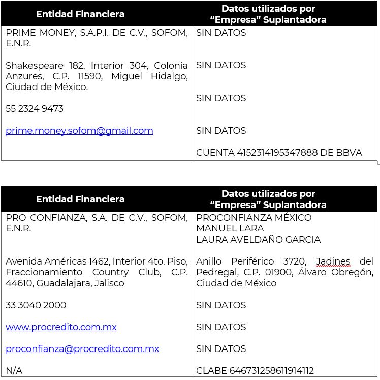 Se recomienda a las personas interesadas en obtener un crédito o cualquier otro servicio financiero, estar alertas del MODUS OPERANDI de los suplantadores, el cual se ha detectado que usualmente es el siguiente: