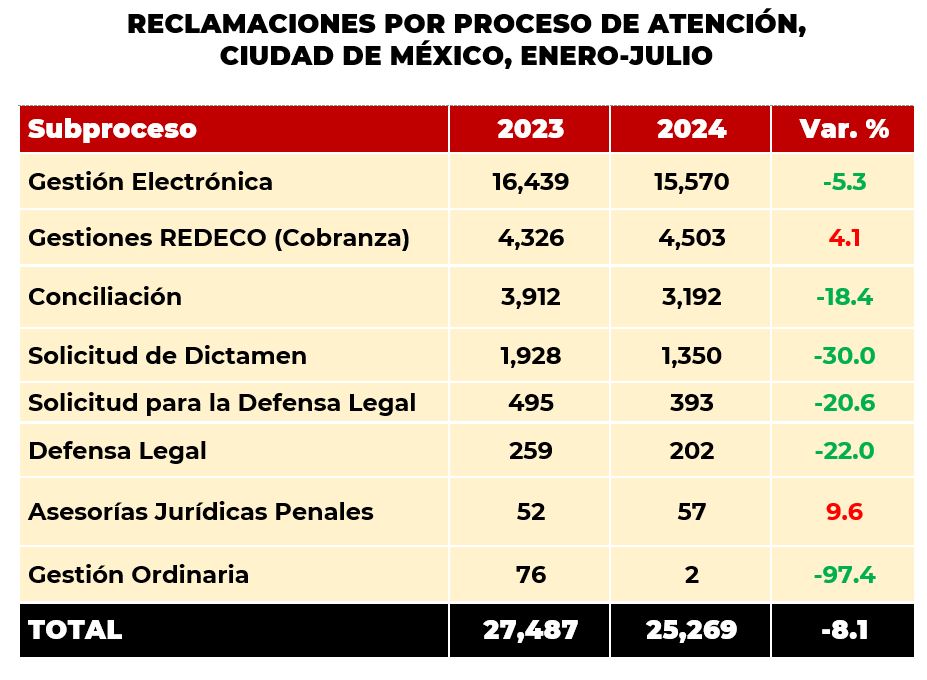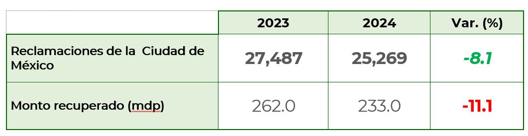 De enero a julio de 2024, de esta entidad se recuperó de las reclamaciones con importe monetario, un total de 233 millones de pesos, lo que significó un decremento del 11.1% con respecto a lo recuperado en el mismo periodo de 2023.