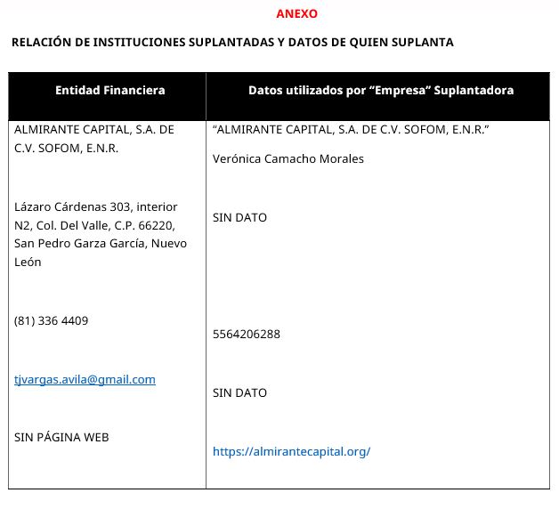 - ALMIRANTE CAPITAL, S.A. DE C.V. SOFOM, E.N.R.