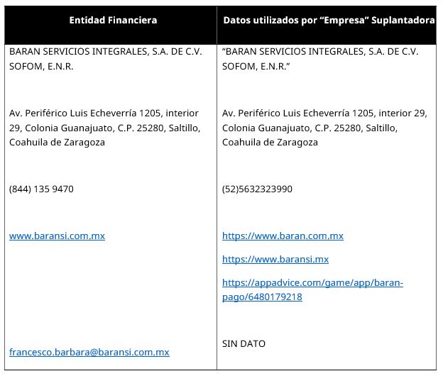 - BARAN SERVICIOS INTEGRALES, S.A. DE C.V. SOFOM, E.N.R.
