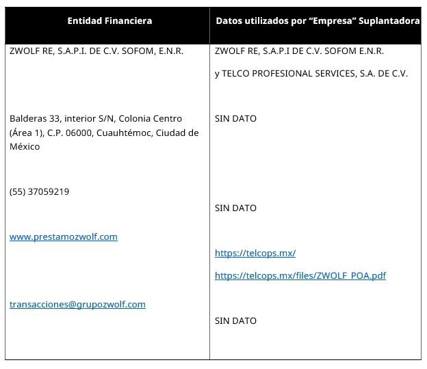 - ZWOLF RE, S.A.P.I. DE C.V. SOFOM, E.N.R.