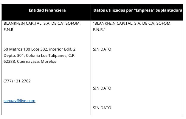 - BLANKFEIN CAPITAL, S.A. DE C.V. SOFOM, E.N.R.