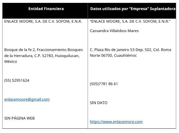 - ENLACE MOORE, S.A. DE C.V. SOFOM, E.N.R.