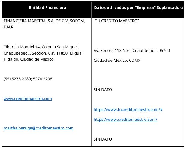 - FINANCIERA MAESTRA, S.A. DE C.V. SOFOM, E.N.R.