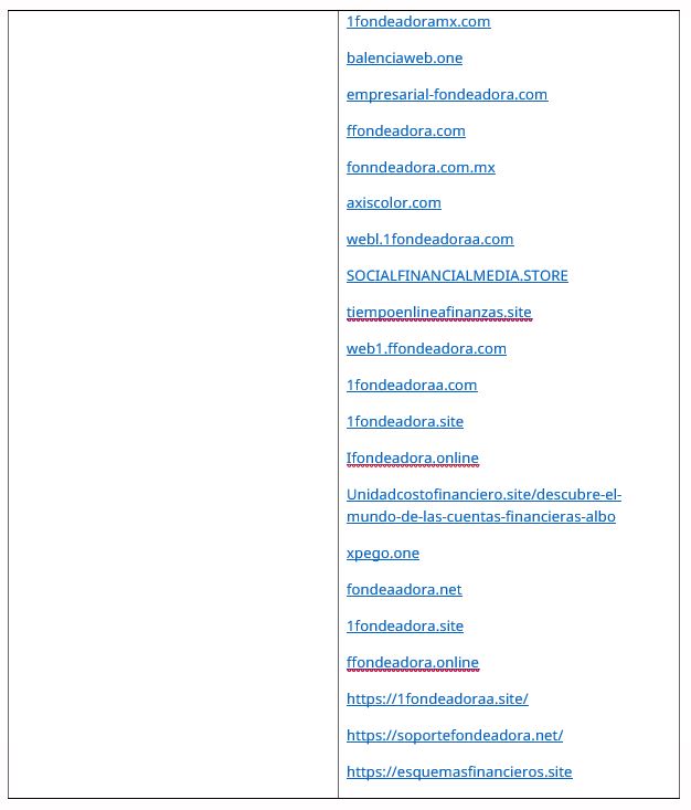 Al mes de septiembre de 2024 esta Comisión Nacional contaba con reportes de 148 instituciones financieras que han sido afectadas por la suplantación o uso indebido y sin autorización de su nombre comercial, denominación, logo e incluso de algunos de sus datos fiscales o administrativos, a las que ahora se suman las 15 detalladas a continuación en anexo: