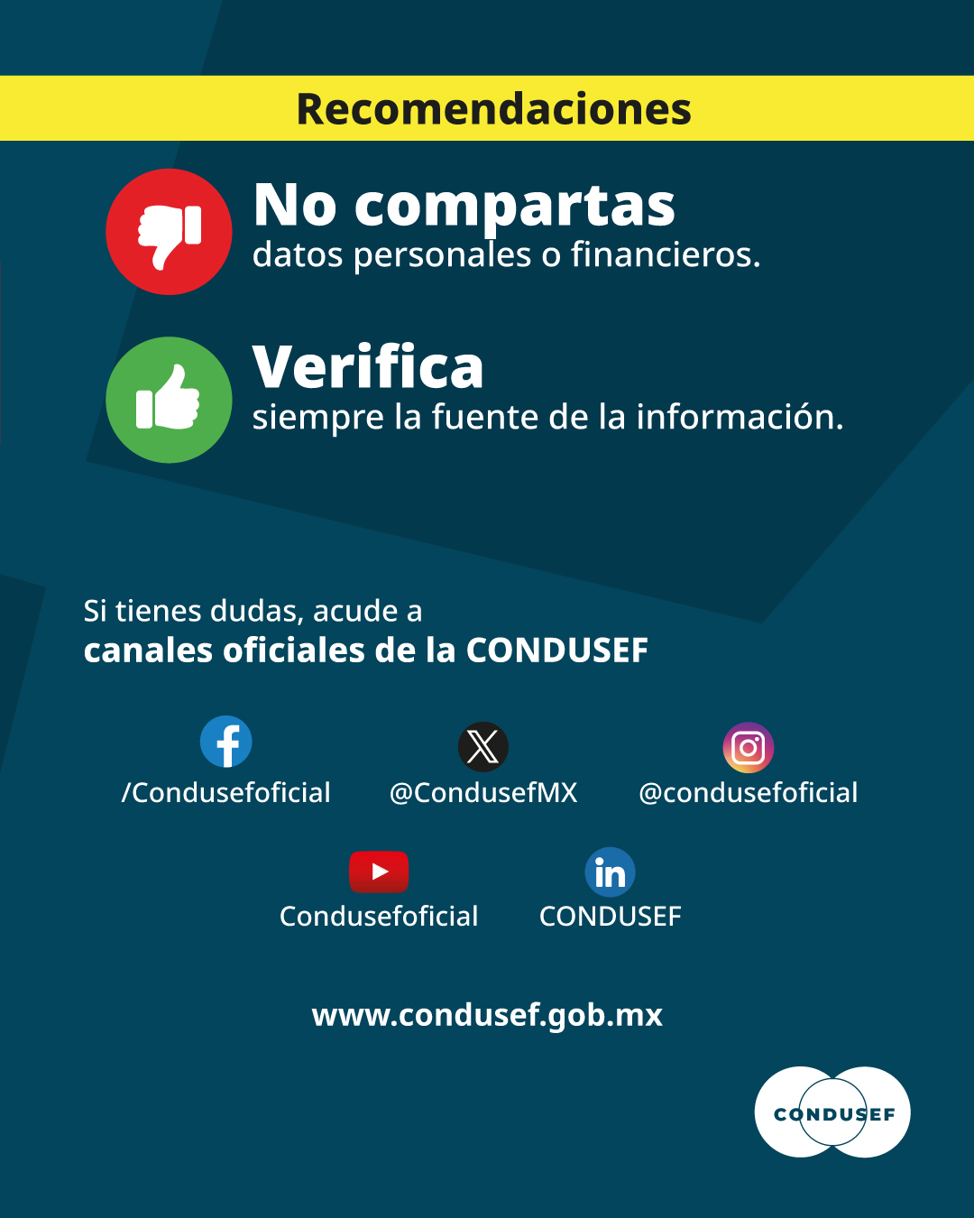 - Ante cualquier duda o sospecha de fraude, acude a los canales oficiales de la CONDUSEF.