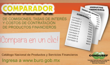 La Comisión Nacional para la Protección y Defensa de los Usuarios de Servicios Financieros (CONDUSEF) presentó el comparador de comisiones, tasas de interés y costos de contratación de 10,840 productos y servicios financieros que se ofrecen en el mercado.