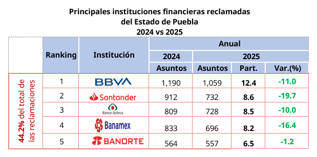 La CONDUSEF atendió 8,539 reclamaciones en Puebla durante 2025