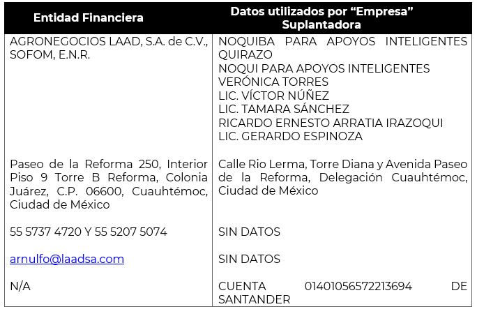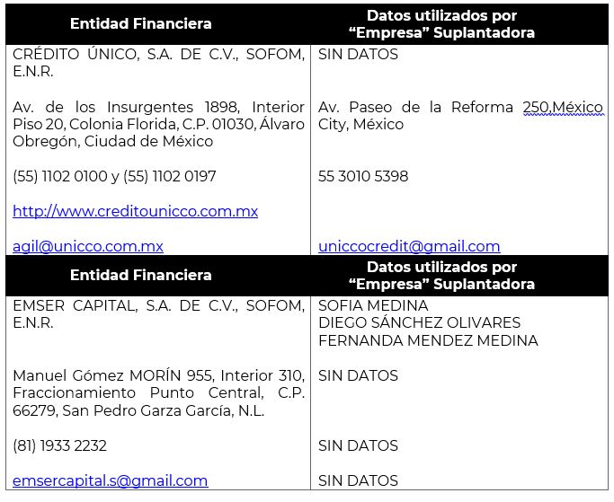 suplantación de su identidad (razón/denominación social) por personas físicas o -empresas-, que buscan afectar económicamente o engañar a quienes requieren de