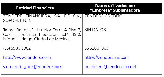- ZÉNDERE FINANCIERA, S.A. DE C.V., SOFOM, E.N.R.