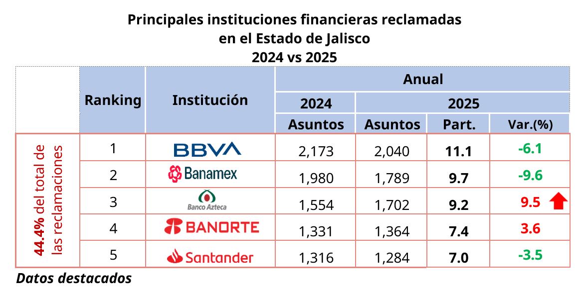 Por sector, la Banca Múltiple acumuló el 66.4% de las reclamaciones, seguida de las Aseguradoras con 11.8% y las SOFOM E.N.R con el 7.5%.