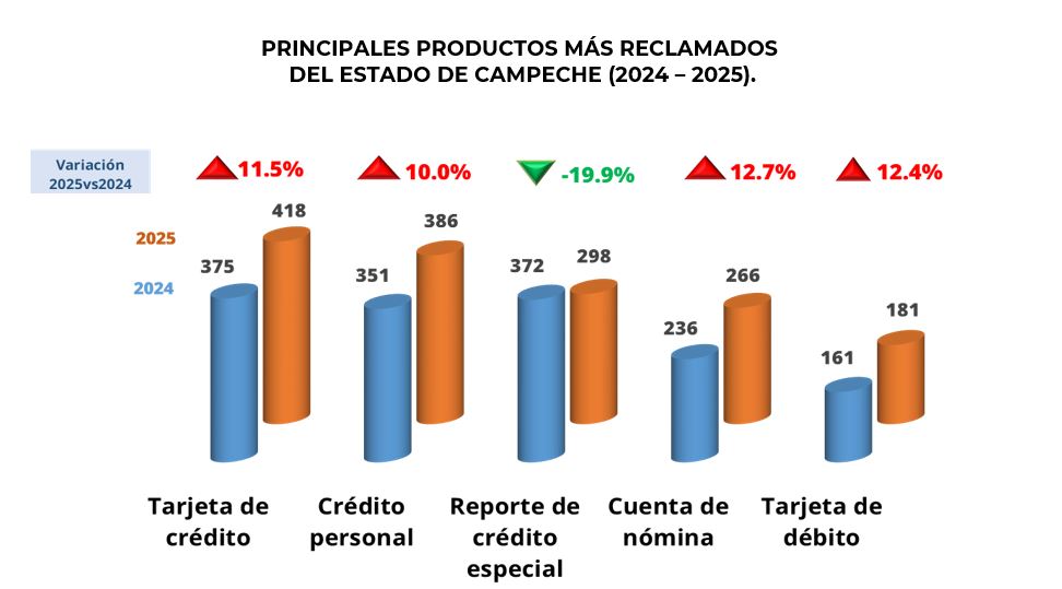 En cuanto a los productos financieros, las reclamaciones estuvieron vinculadas a tarjeta de crédito, crédito personal y reporte de crédito especial, que acumularon el 42.3% de las quejas recibidas.